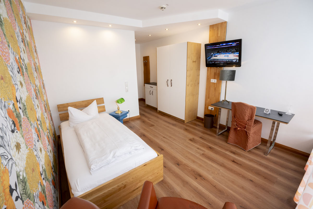 – Einzelzimmer mit Bad und WC, OHNE Küche.